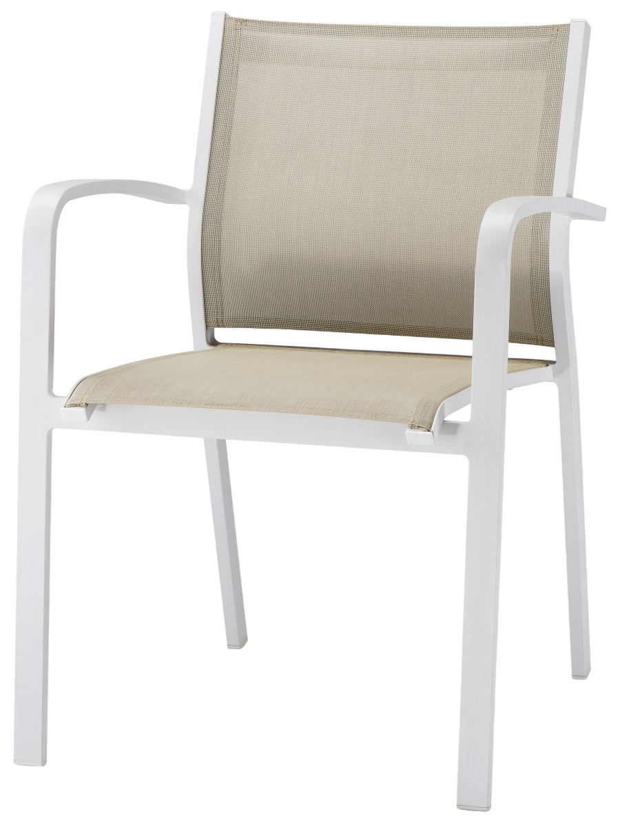 Современное кресло GS 936 с алюминиевым каркасом толщиной 1.5 мм и покрытием спинки и сиденья из текстилена. Кресла штабелируются, поэтому их можно легко хранить, например, в зимний сезон, когда они не используются. Характеристики материалов и практичность этой модели делают ее подходящей для наружных пространств, таких как терраса загороднгоо дома или кафе.