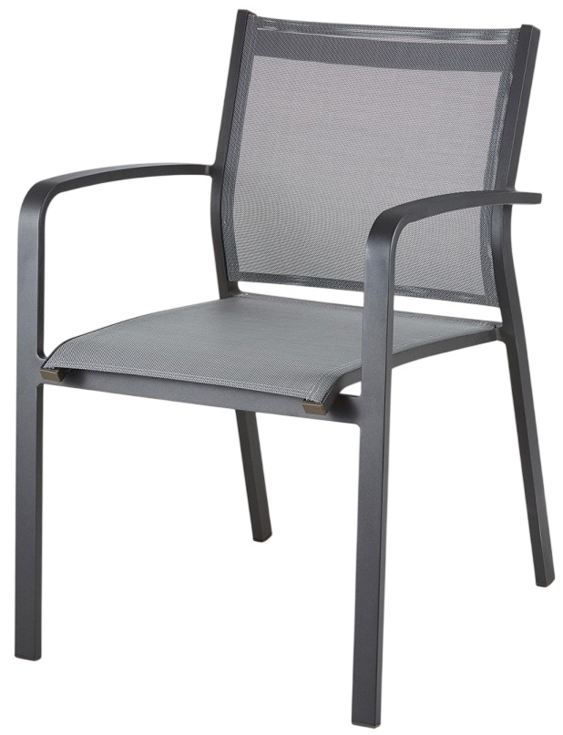 Современное кресло GS 936 с алюминиевым каркасом толщиной 1.5 мм и покрытием спинки и сиденья из текстилена. Кресла штабелируются, поэтому их можно легко хранить, например, в зимний сезон, когда они не используются. Характеристики материалов и практичность этой модели делают ее подходящей для наружных пространств, таких как терраса загороднгоо дома или кафе.