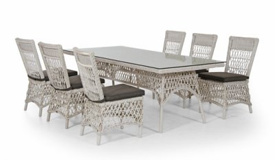 Beatrice - изящная и удивительно привлекательная коллекция мебели, выполненная в дизайне старых времен. Стол создан из редко-плетеного искусственного ротанга, что придает ему визуальной легкости и воздушности. Каркас алюминиевый, тип плетения: круглое и полукруглое 5,3 мм. Стол комплектуется стеклянной столешницей. Стол Beatrice прекрасно подойдет для дачи, дома, сада.