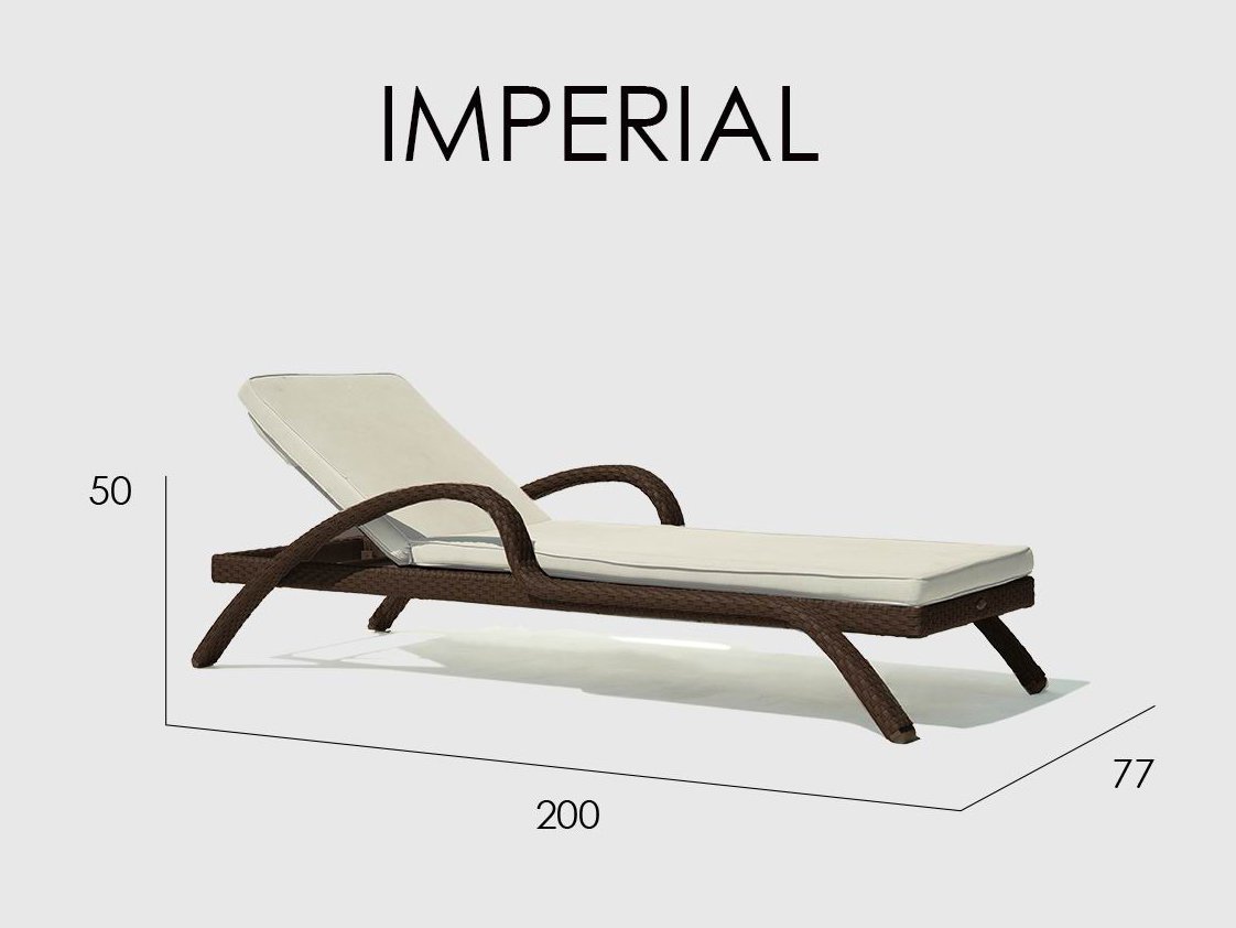 Шезлонг Imperial – идеальная модель для комфортного отдыха из искусственного ротанга цвета White Wash и матрасом из ткани sunbrella. Прекрасно подходит к коллекции Calderan.