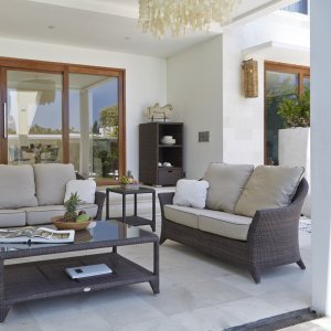 Плетеный двухместный диван из искусственного ротанга цвета Mocca и подушками из ткани Sunbrella. Классическая модель, закруглённые формы, плавные линии и плотное плетение - составляющие универсального стиля коллекции Malta, где мебель легко вписывается в любое пространство, создавая ощущение изысканной эстетики.