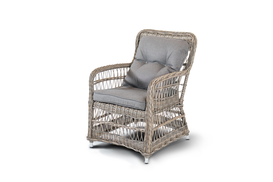 Прочный каркас стульев изготовлен из алюминия, что гарантирует продолжительный срок службы модели. Глубокие стулья с подлокотниками отличаются повышенным удобством и комплектуются мягкими подушками для максимального комфорта.