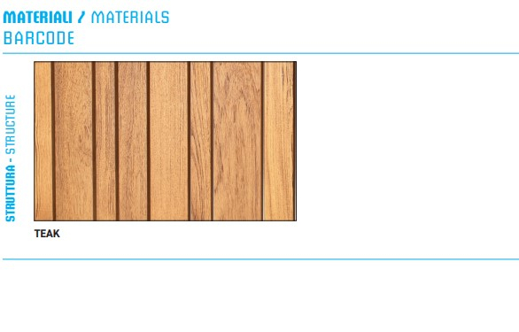 Материал, используемый для мебели Barcode - древесина тика с различной отделкой, которая обладает следующими характеристиками: