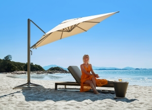 Эта модель 2017 года - результат технологического прорыва: газовый поршень обеспечивает плавное и бесшумное открывание и закрывание зонта всего одним нажатием. Благодаря боковой опоре и компактному механизму, зонт аккуратно придвигается к стойке и не нависает над мебелью, что особенно удобно в условиях ограниченного пространства. Корпус выполнен из алюминия, тент - из водоотталкивающего акрила плотностью 350 г/м². Цветовая гамма (графит + слоновая кость) легко вписывается в любое современное пространство.