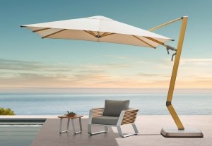 Модель сочетает проверенные решения и эстетику: декоративное покрытие под дерево (имитация ироко) придаёт зонту благородный, респектабельный вид. Открытие осуществляется с помощью ручной лебёдки, а выдвижная система позволяет закрывать зонт, не передвигая мебель. Galileo Wood также оснащён ветровой блокировкой, вентиляционным клапаном и системой быстрой замены спиц - всё для долгой и надёжной службы.