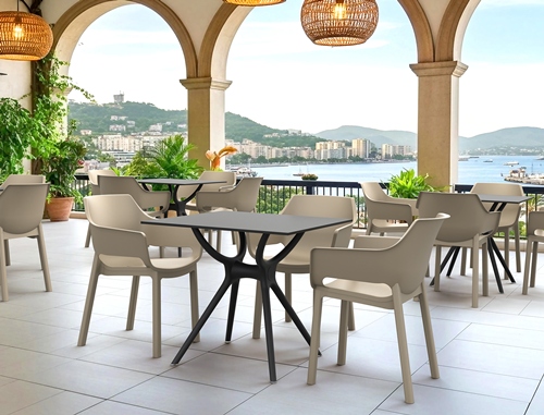 Столы Gatsby сочетают в себе ламинированную столешницу и подстолье из линейного полиэтилена низкой плотности (LLDPE), что делает их не только эстетически привлекательными, но и чрезвычайно практичными. Они устойчивы к ультрафиолетовому излучению, перепадам температур и механическим воздействиям. Благодаря различным размерам, столы легко адаптируются к любому пространству – будь то ресторан, кафе или домашняя терраса.